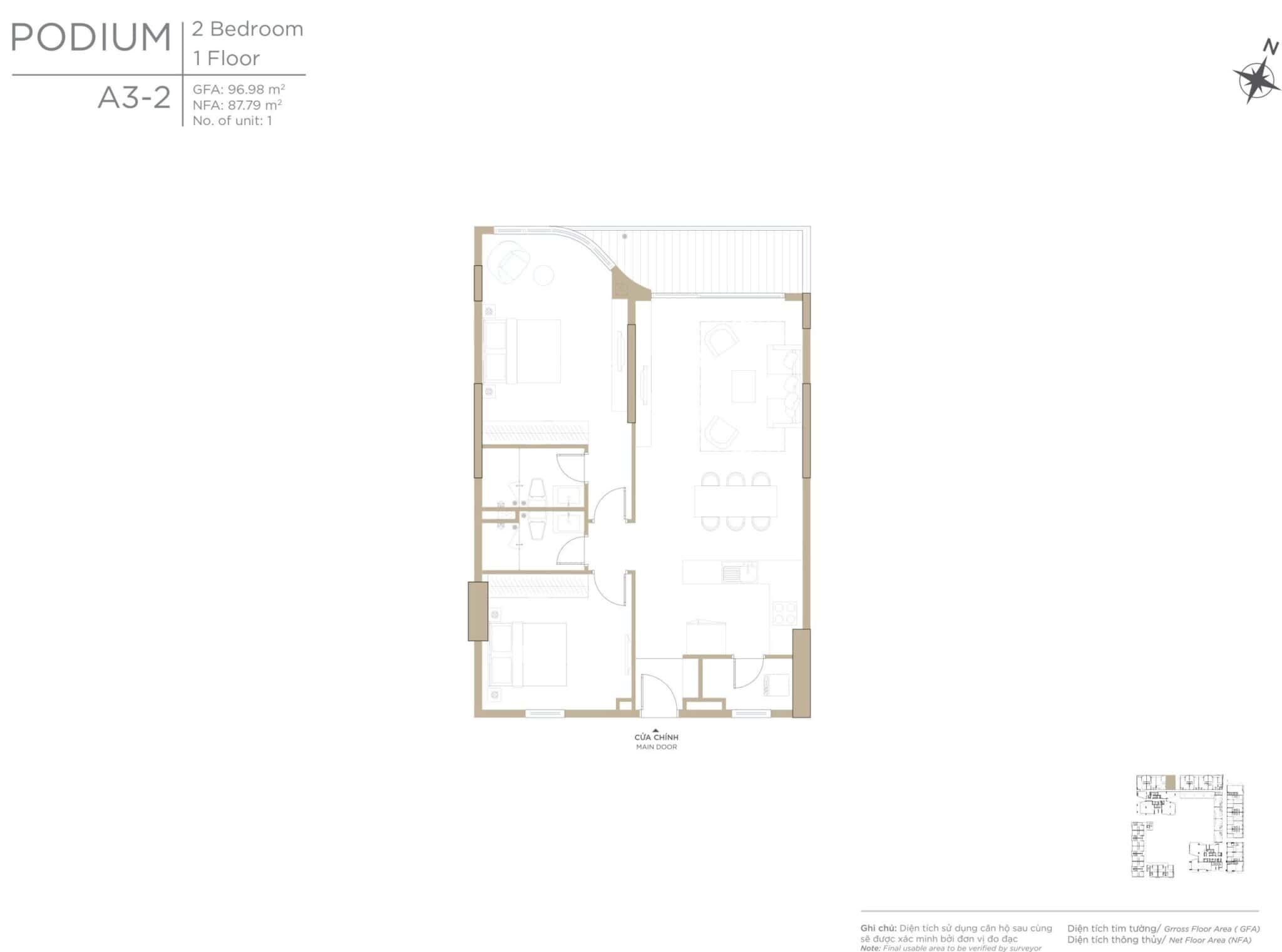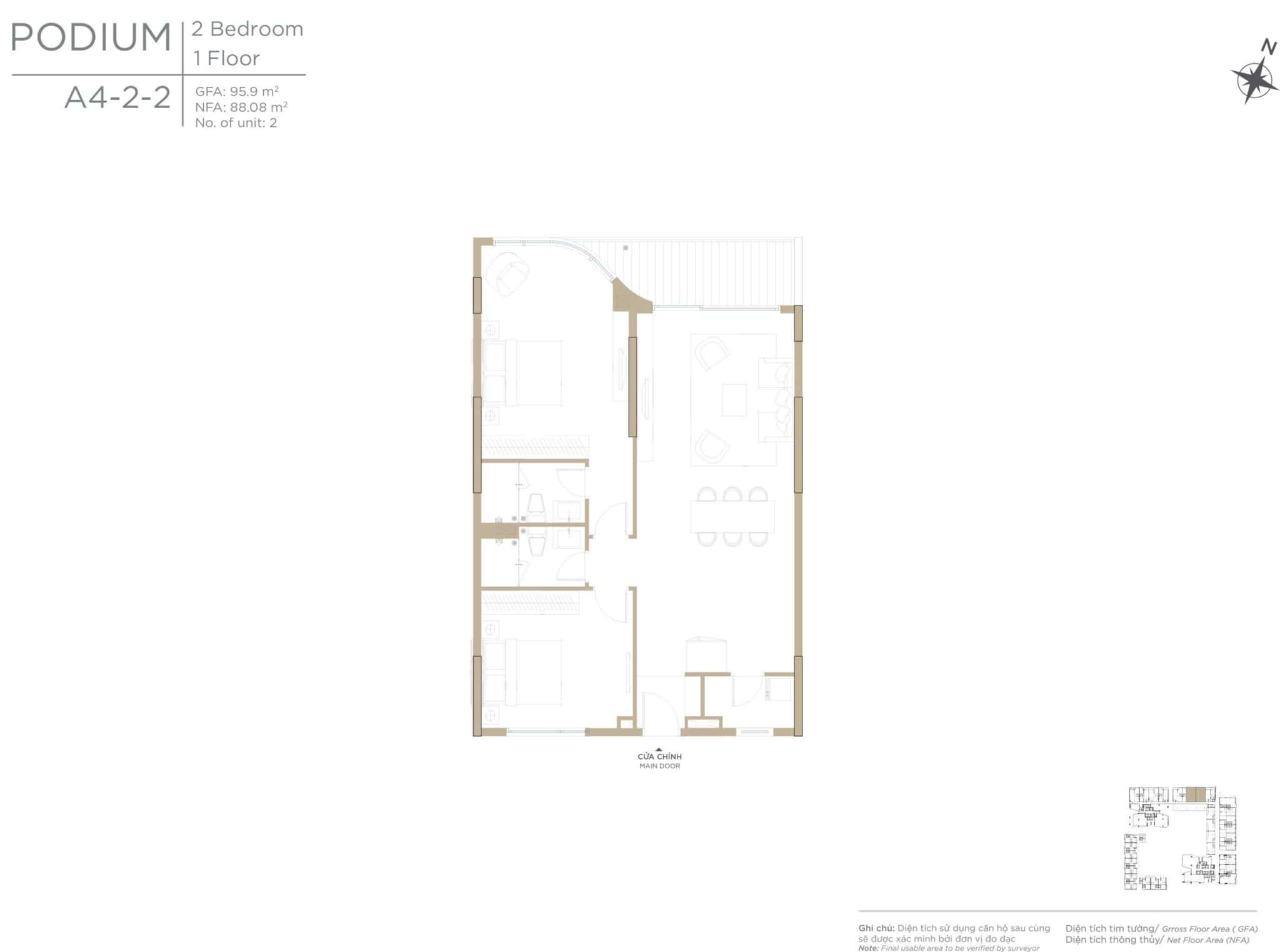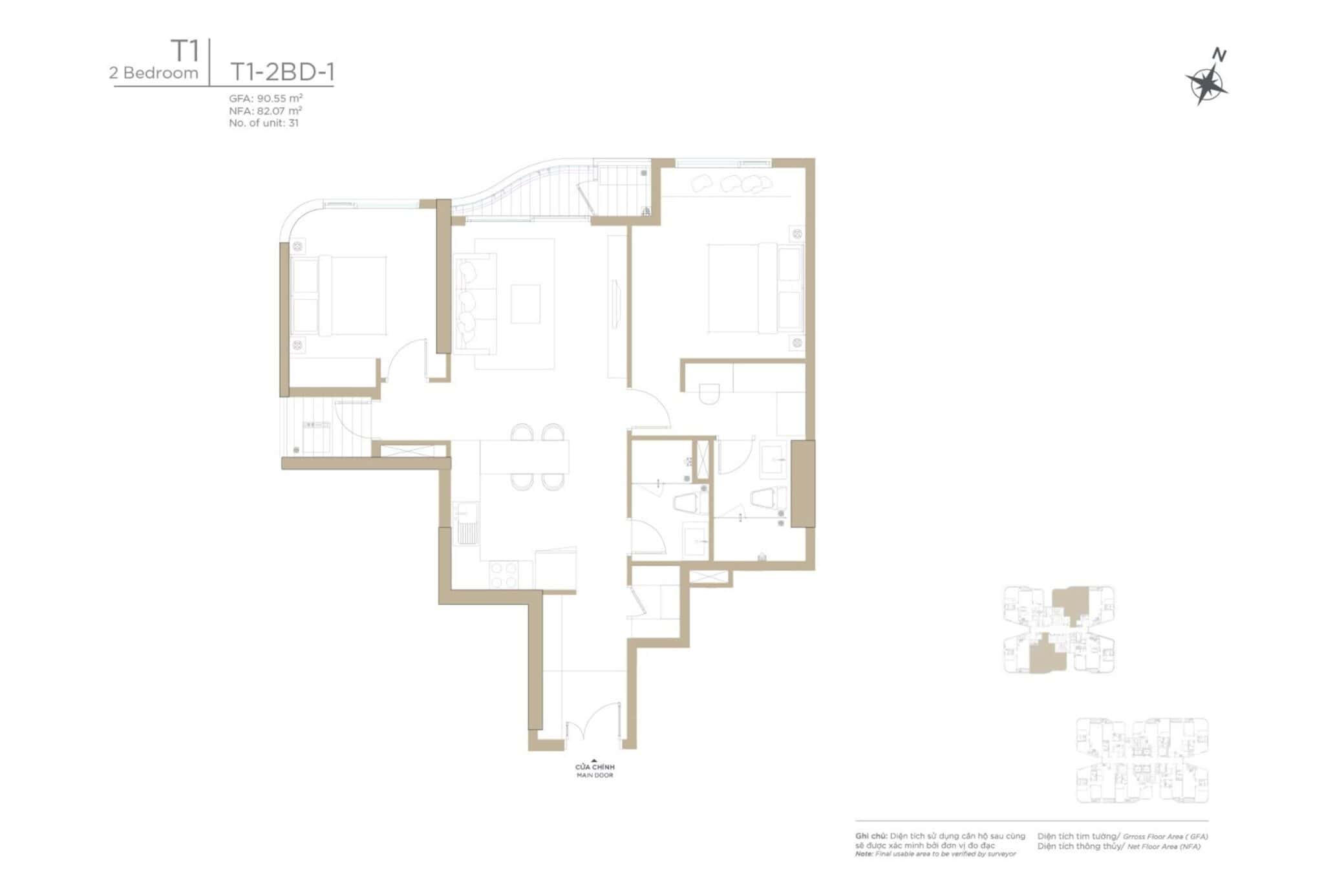 - Quy mô: 2 tòa tháp căn hộ (T1: 25 tầng, T2: 32 tầng)