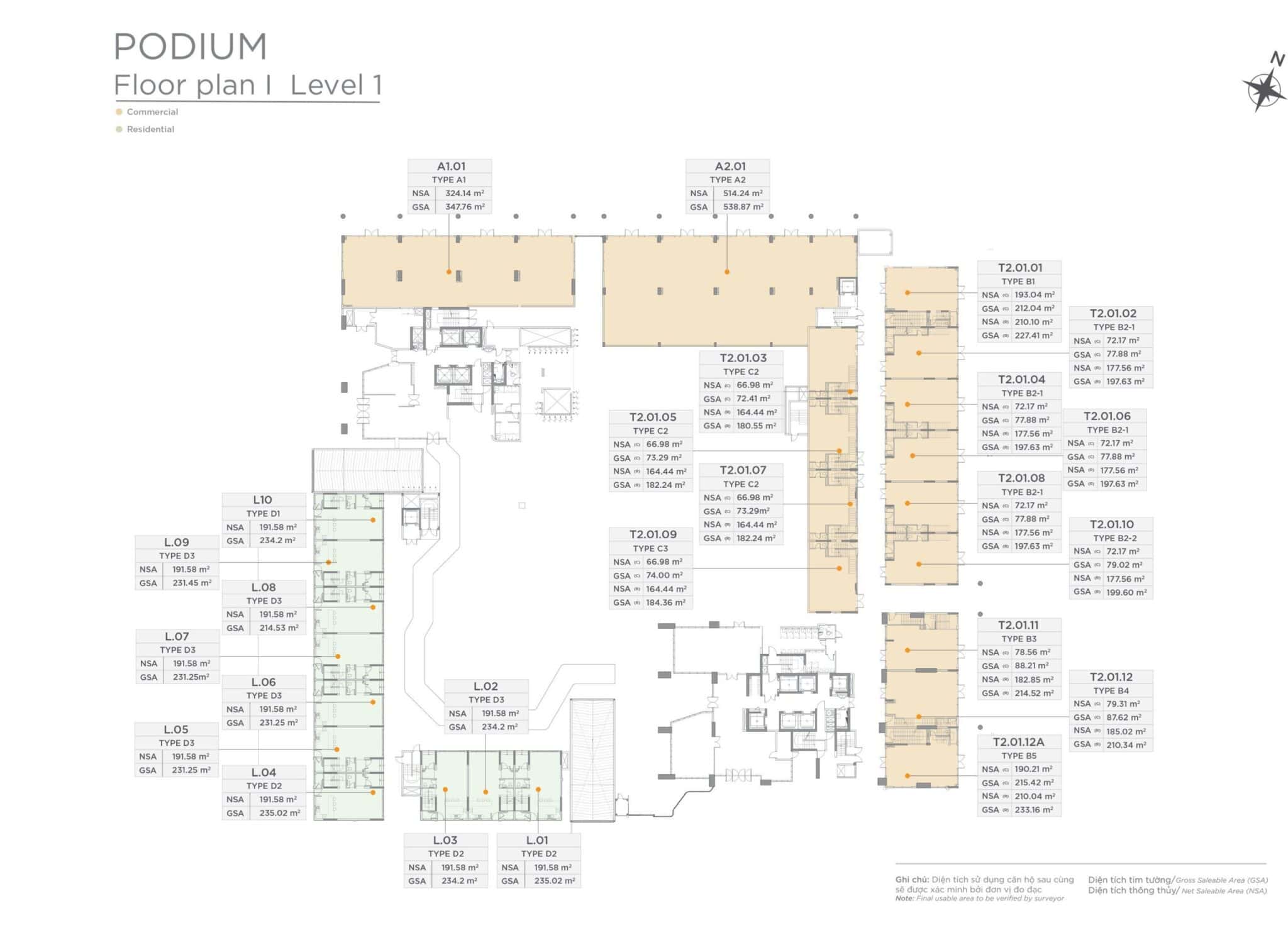 Mặt bằng khối đế (Podium), Shophouse & Nhà phố