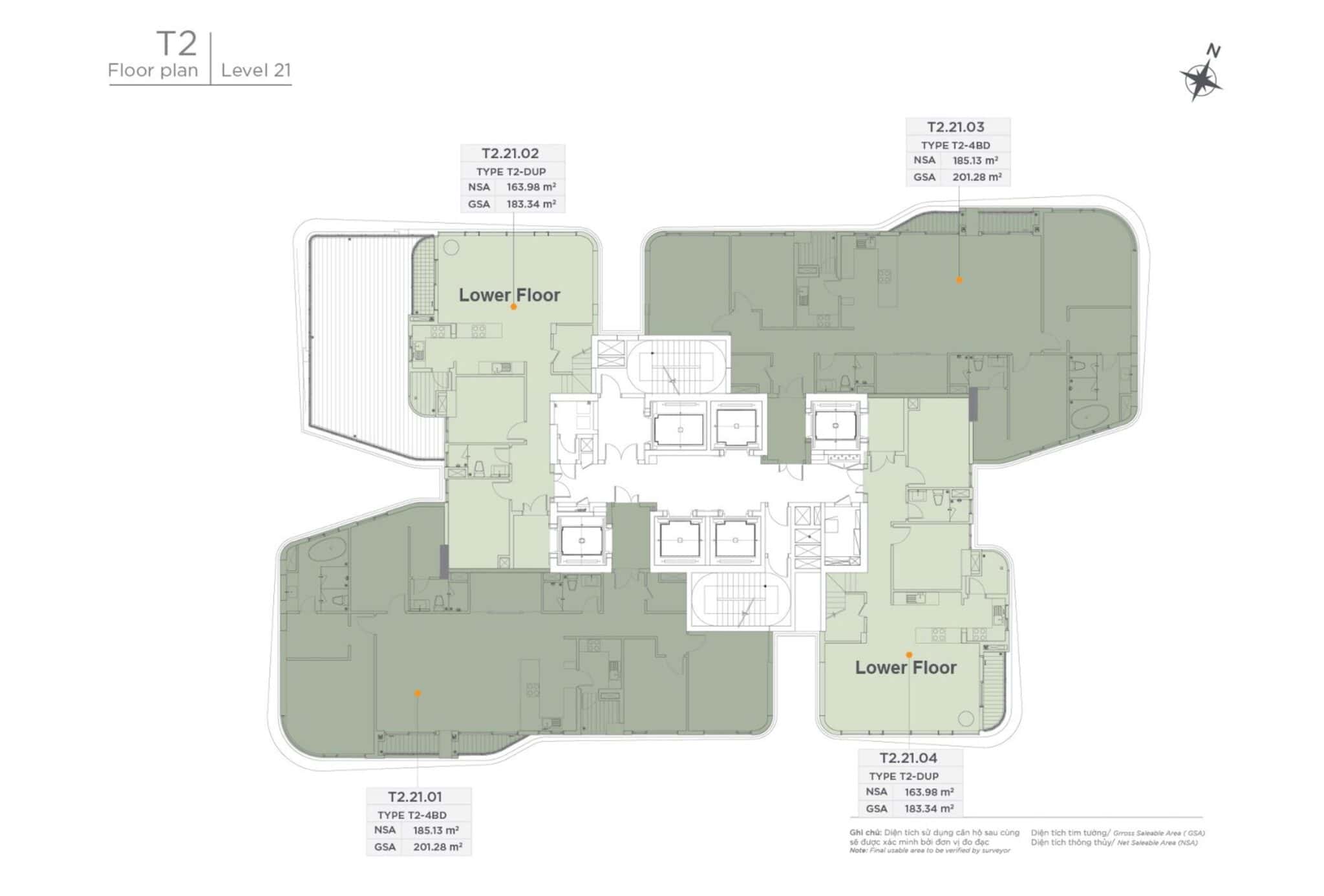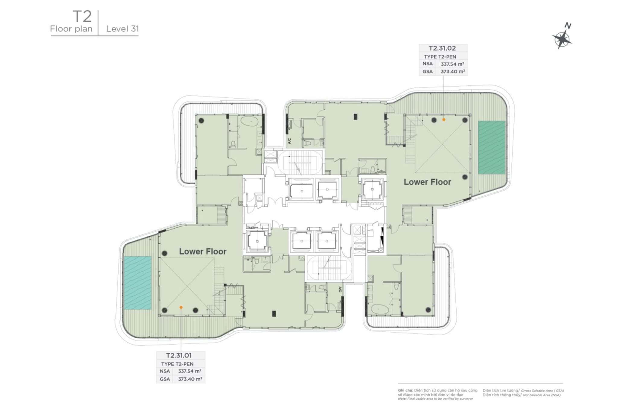 - Tầng 31–32: Mỗi tầng 2 căn Penthouse độc bản