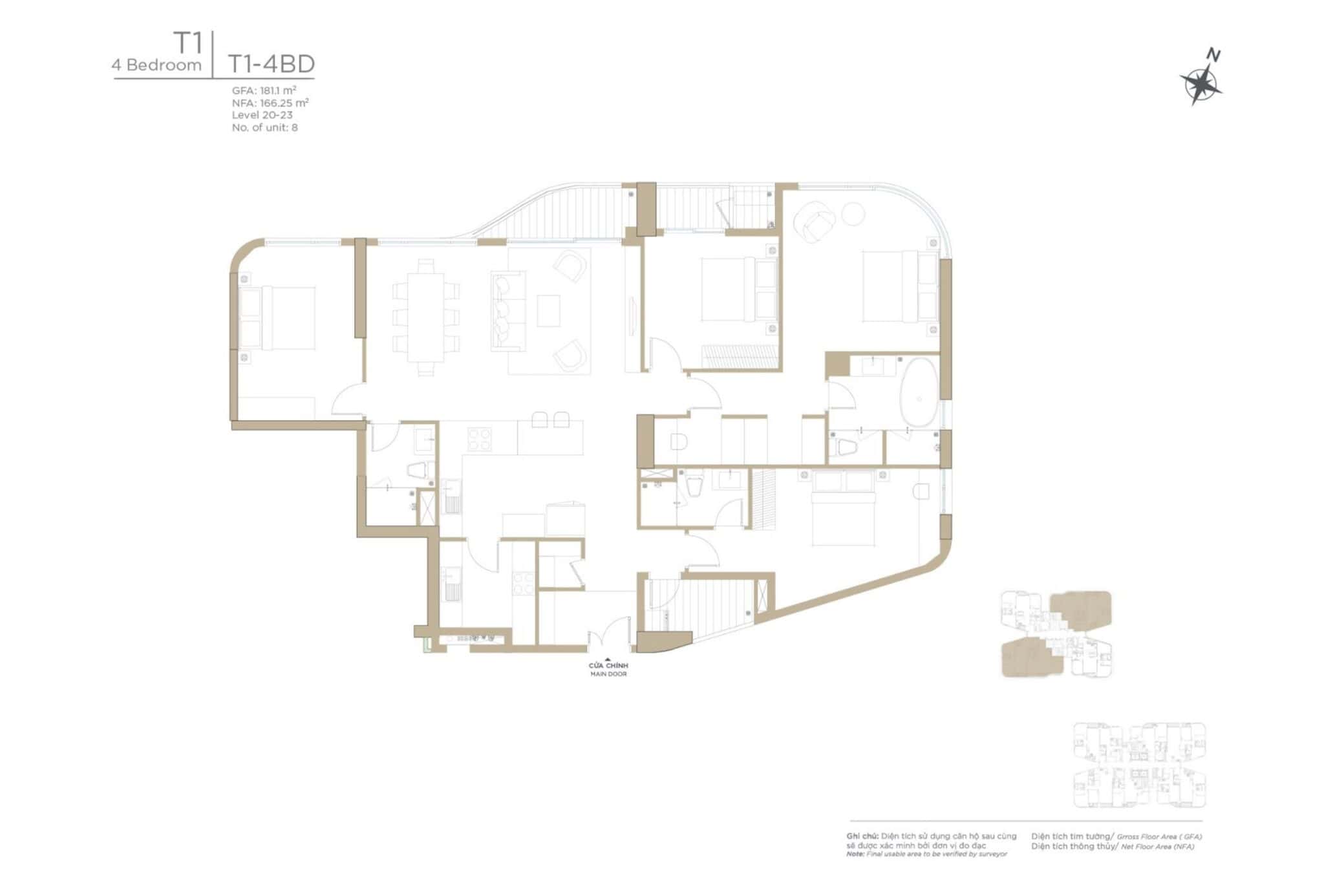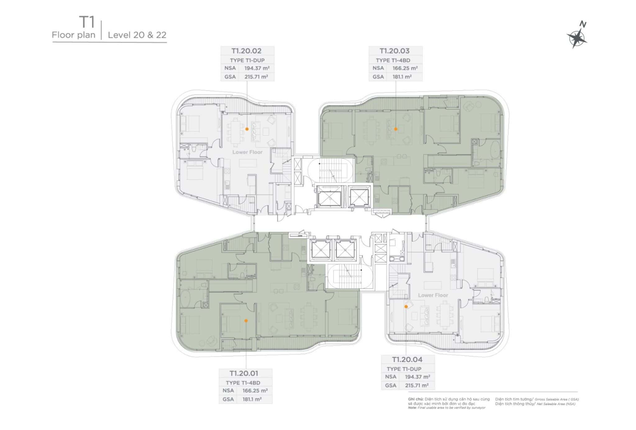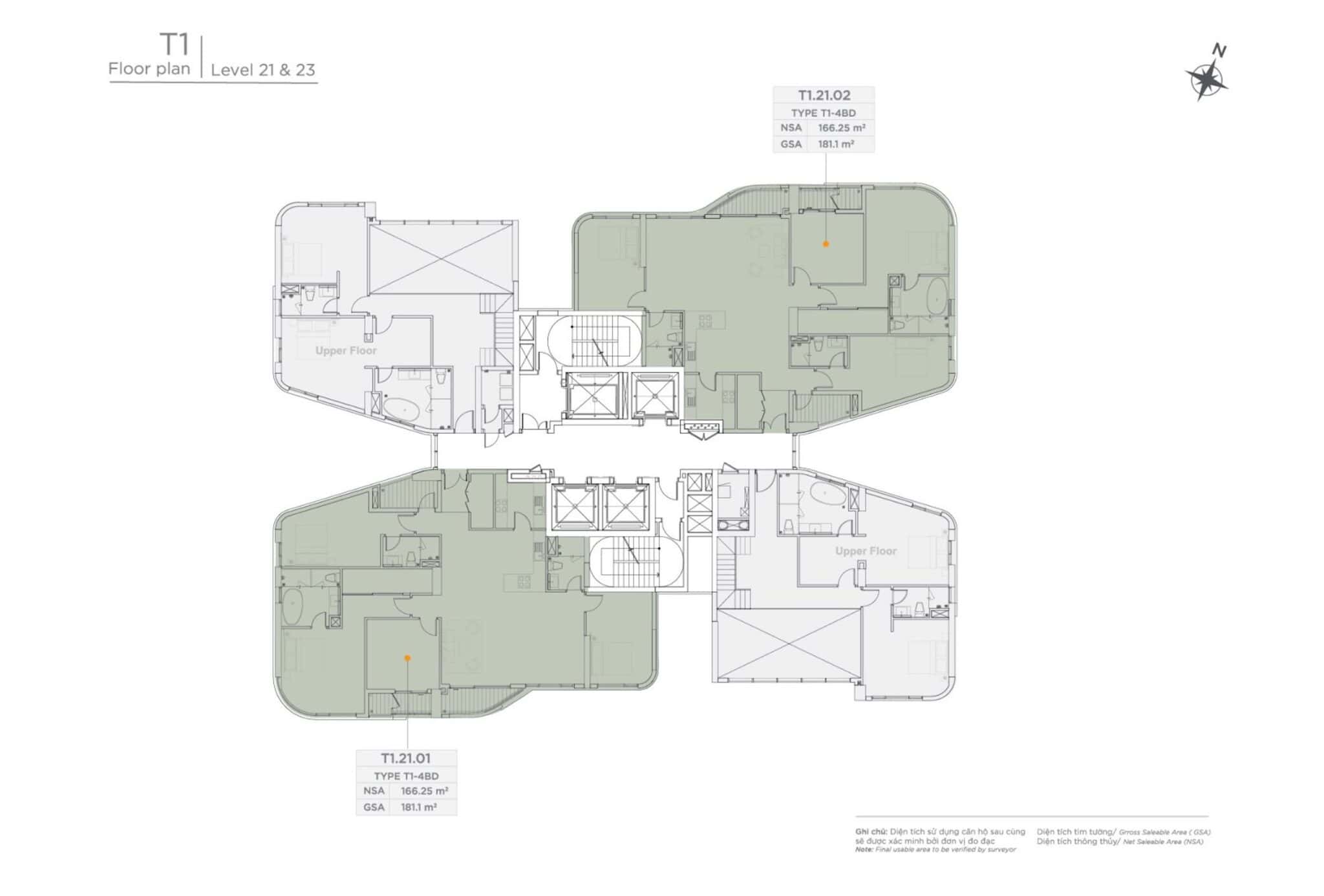 - Tầng 20–23: Mỗi tầng 4 căn (2 căn 4PN, 2 căn Duplex)