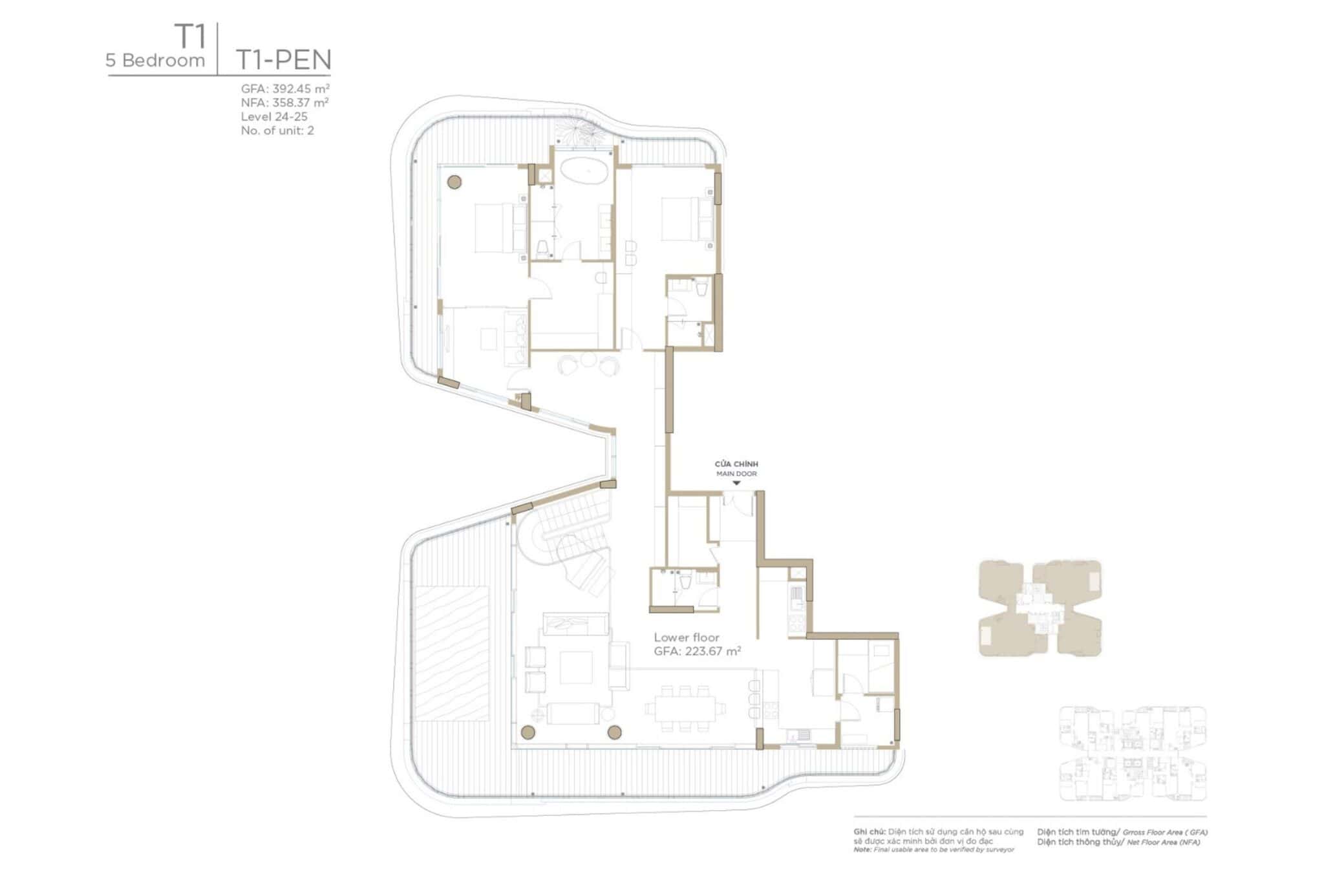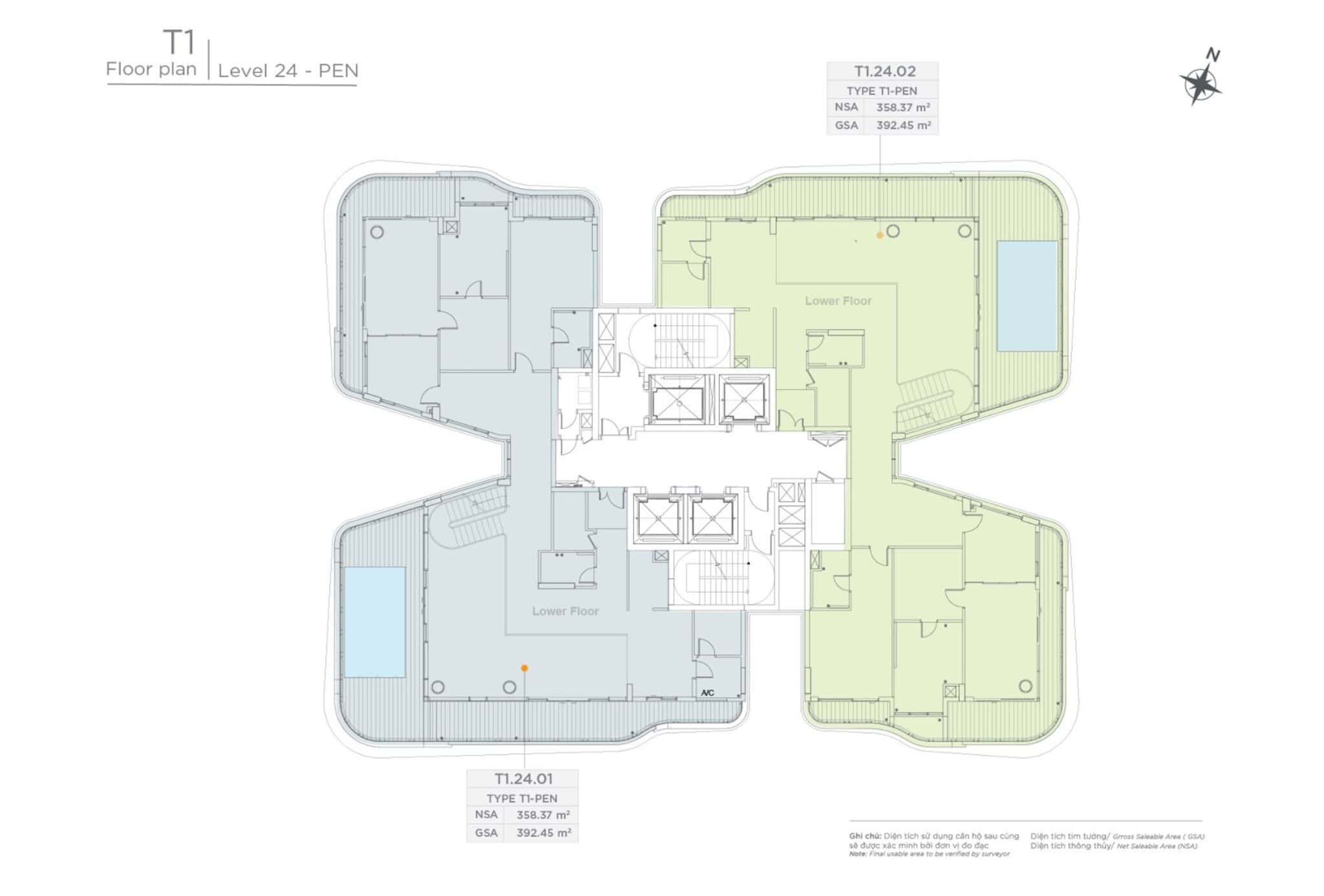 - Tầng 24–25: Mỗi tầng 2 căn Penthouse sang trọng