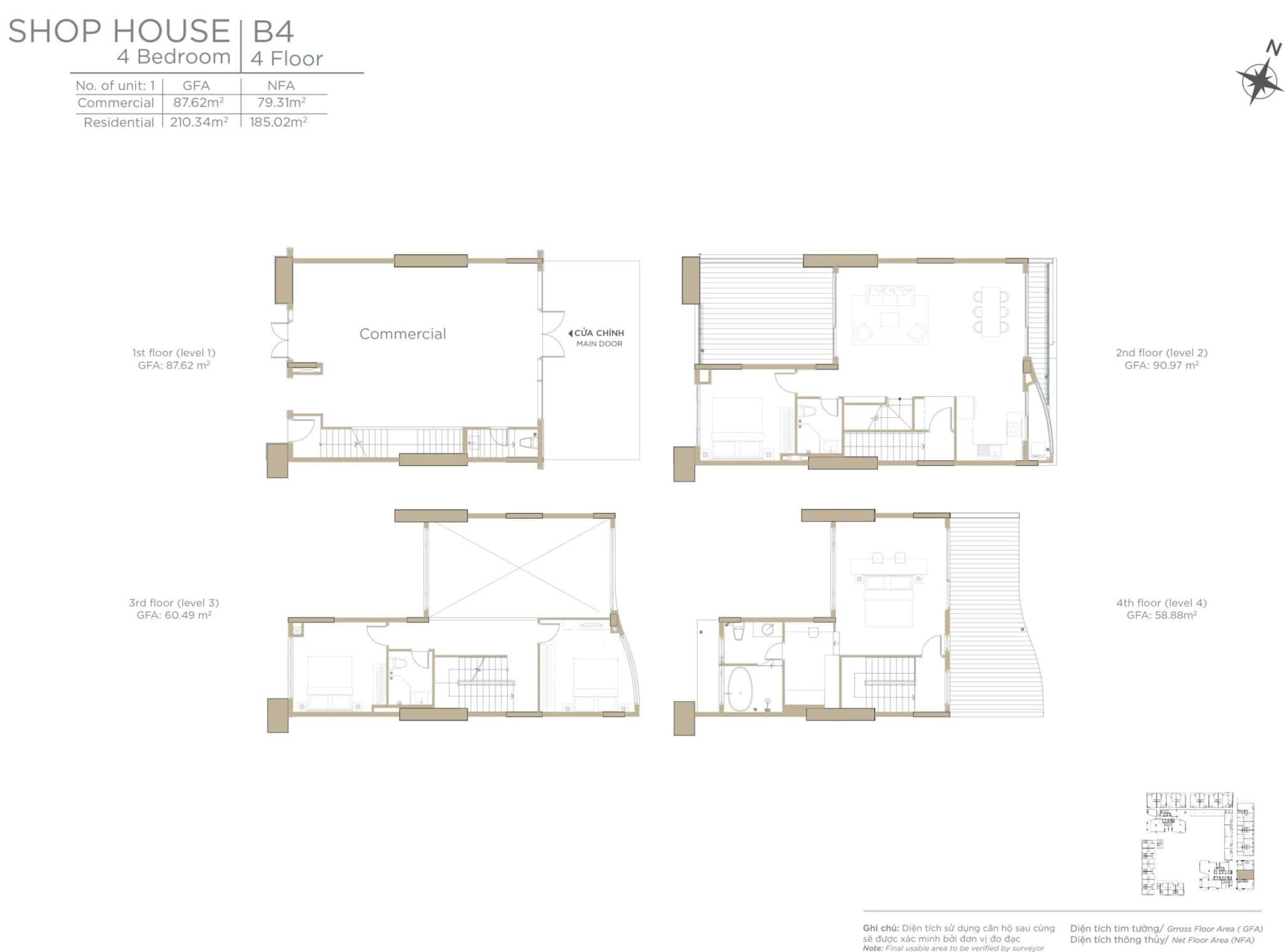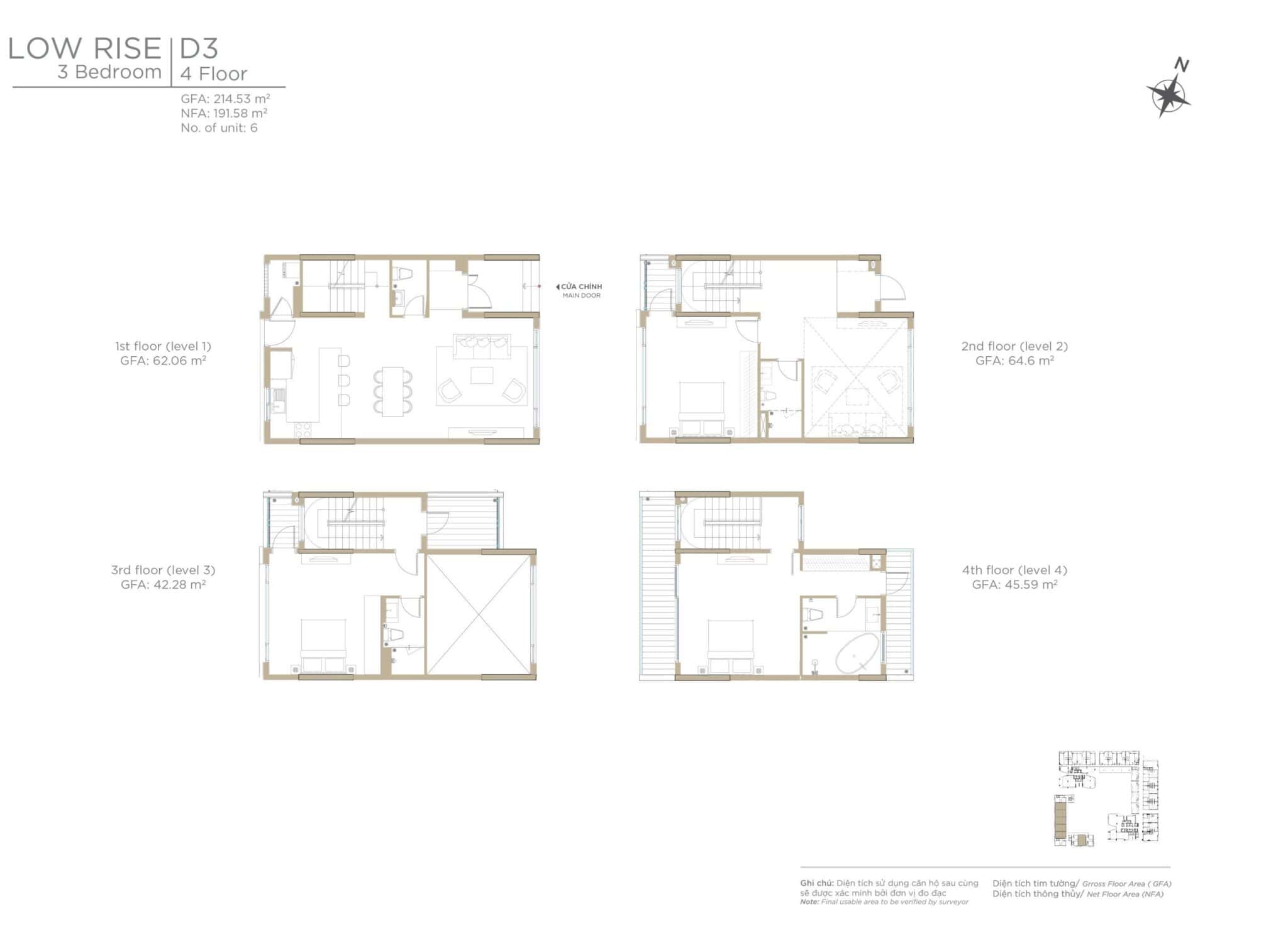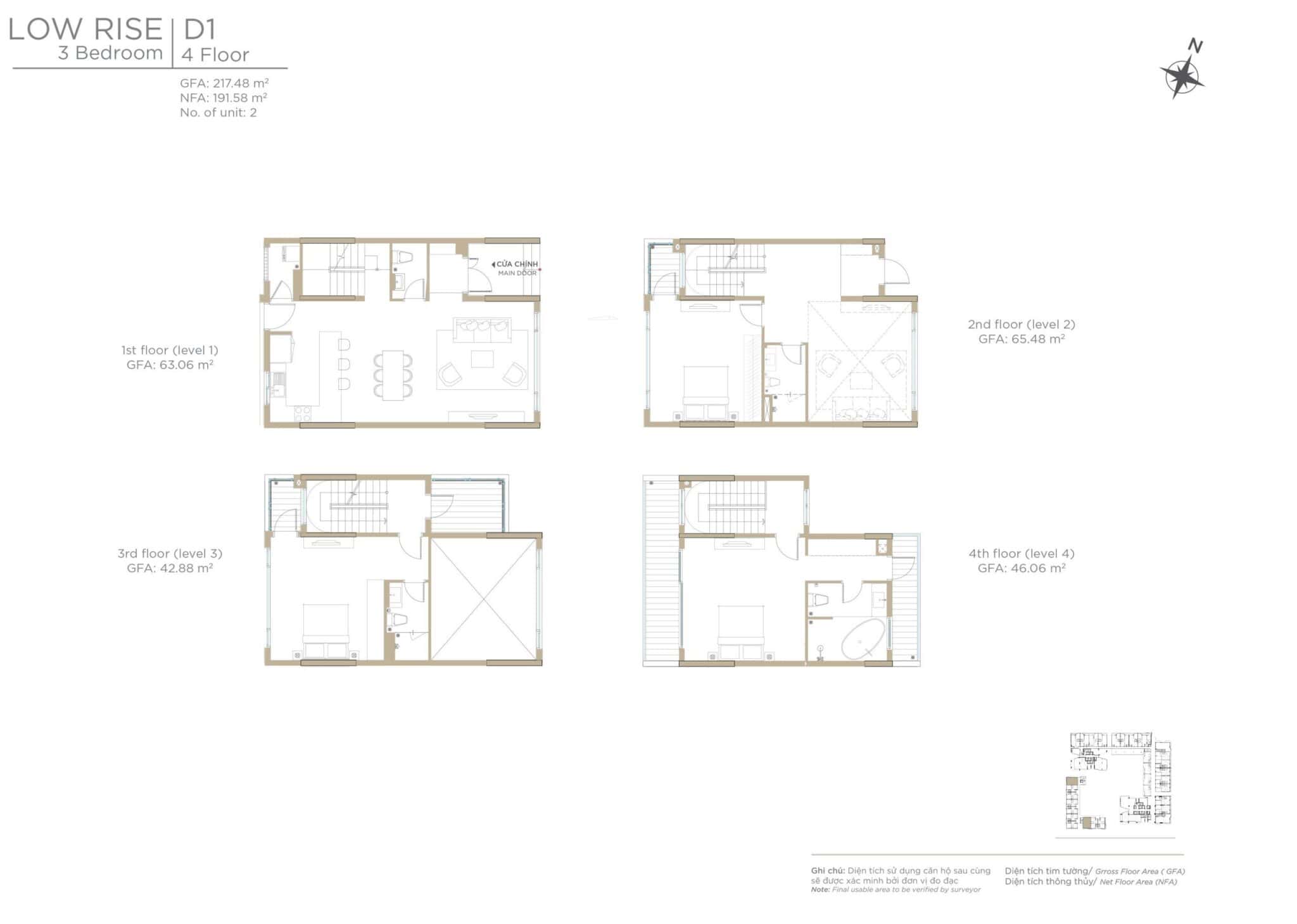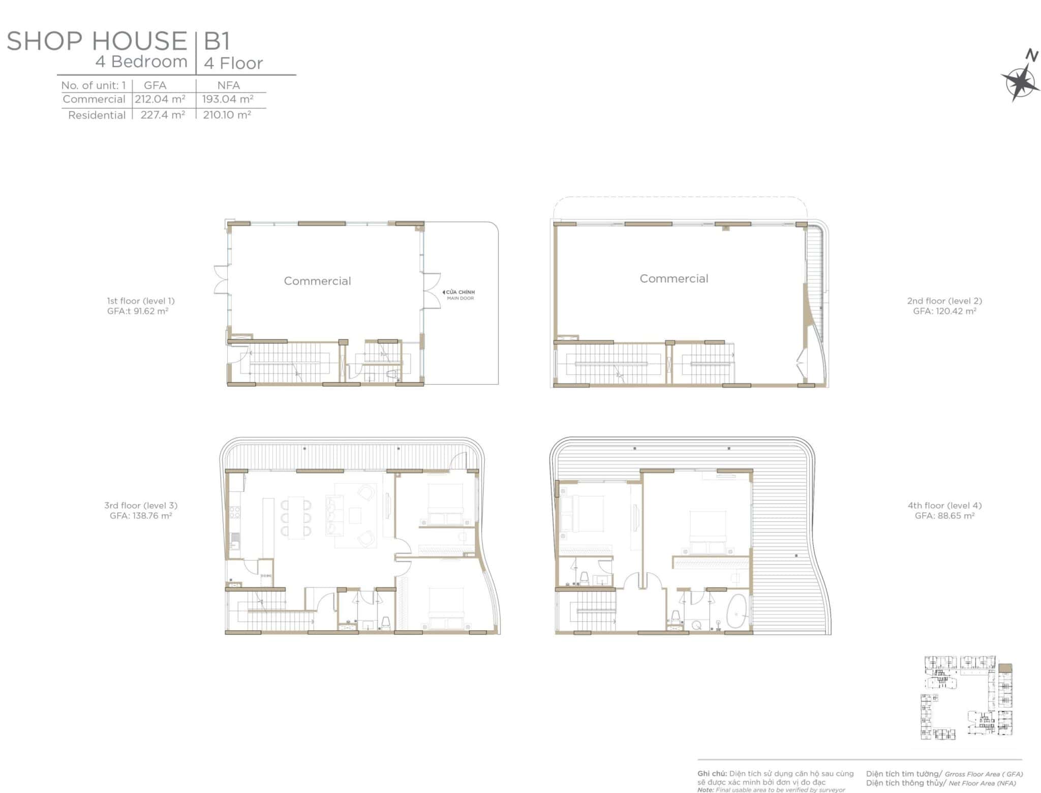 - Loại hình: Căn hộ 1–4 phòng ngủ, Duplex, Penthouse, Shophouse và Nhà phố (Low-rise)