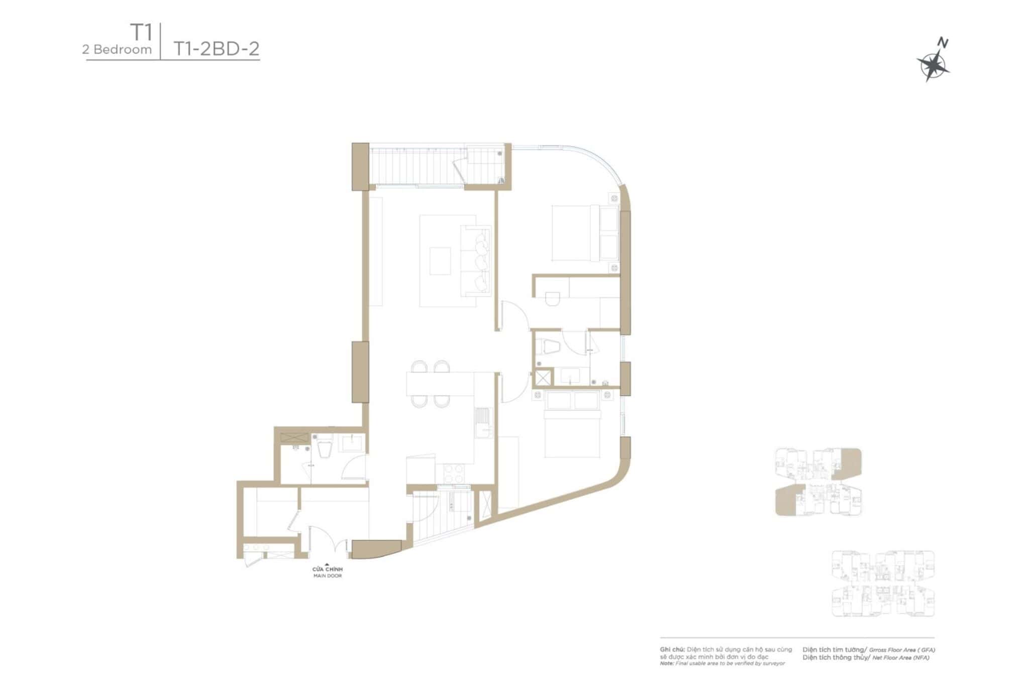 Thiết kế layout căn hộ tòa T2 Zeit River Thủ Thiêm