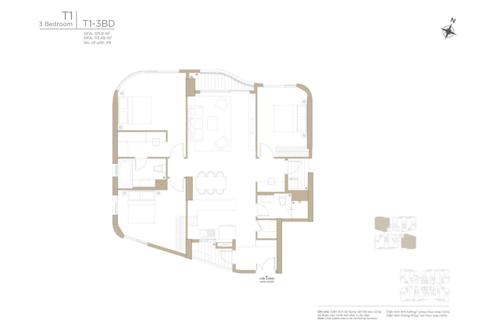 Thiết kế layout căn hộ Tòa T1 Zeit River Thủ Thiêm